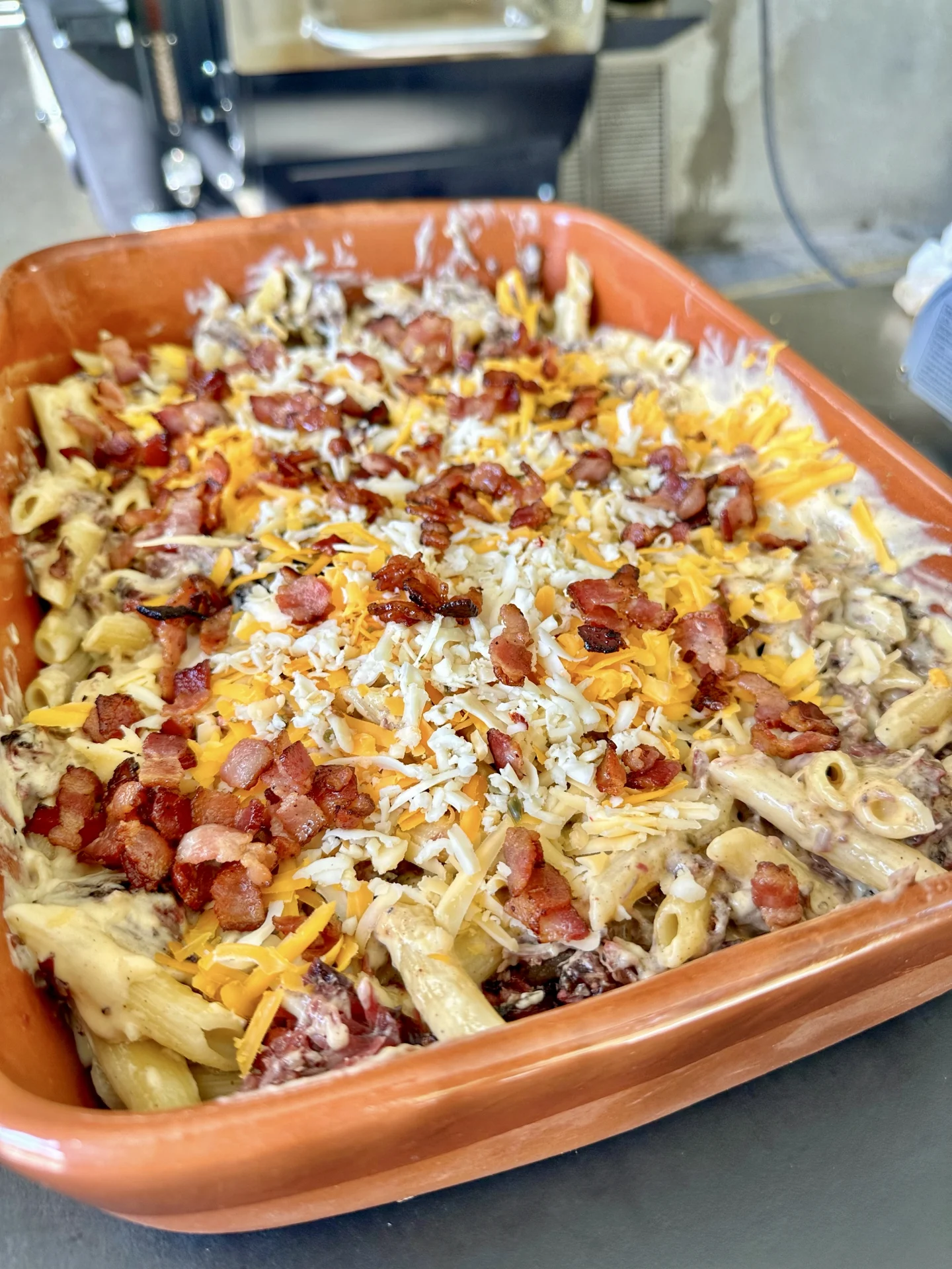 Mac and Cheese is the most desired comfort food on the planet! Have it in our home 3-4 times a week but it is typically the store-bought kind. I wanted to elevate this delicious side dish and turn it into the main feast! How do you do that, you might think to yourself. Well, I bought a 3-bone slab of beef ribs and smoked them low and slow, and added them into my Mac and Cheese recipe, it was fantastic!