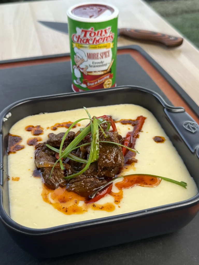 The combination of tender beef, sautéed peppers and onions, and a rich, smoky sauce served over a bed of creamy grits makes for a dish that’s both comforting and packed with bold flavors. The grits absorb the flavorful juices from the beef, making every bite deliciously rich and satisfying.