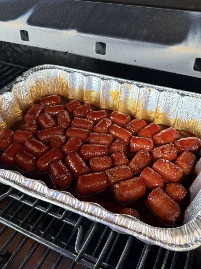 The whole process takes about 2 hours and 15 minutes from start to finish. This includes cutting the hot dogs, coating them with rub, smoking, braising in glaze, and finishing uncovered. The result is sticky, smoky nuggets with crispy caramelized edges and juicy centers. Each bite delivers sweet heat balanced by savory BBQ flavors.
