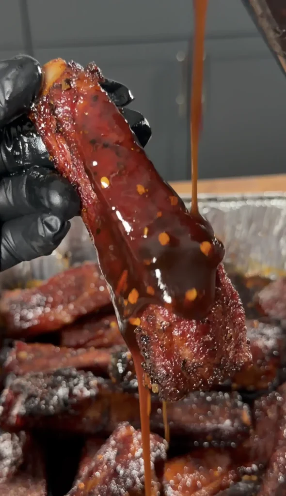 The sauce will reduce and concentrate. The sugars will caramelize. The ribs will develop that signature BBQ candy shine. Watch carefully during the last 5 minutes to prevent burning. If the glaze starts to scorch, pull the ribs off immediately.