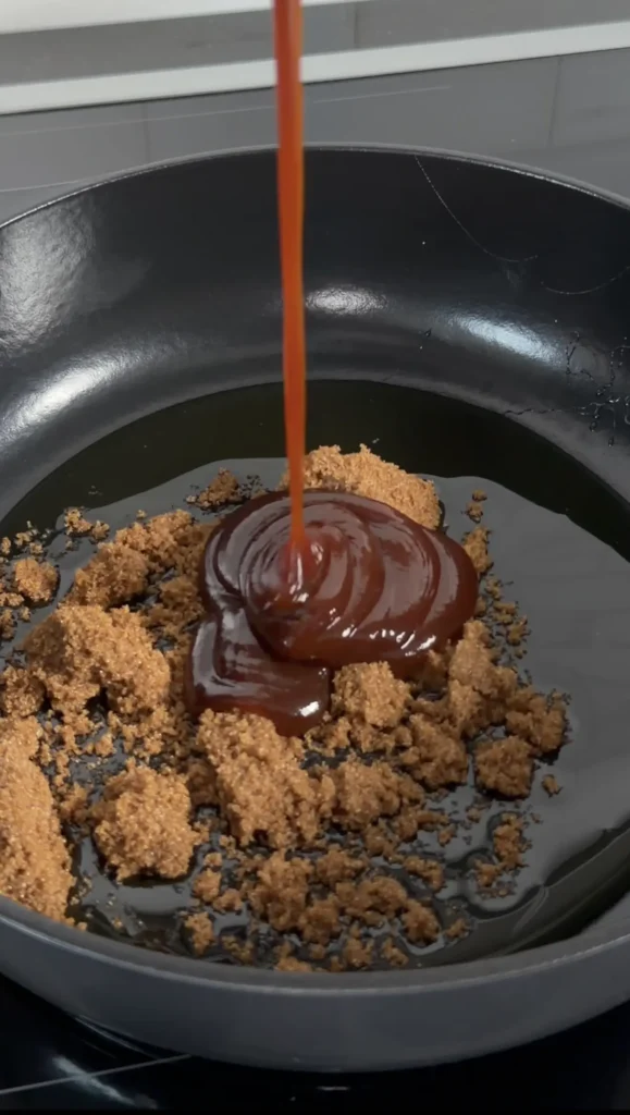 Heat over medium heat, stirring frequently, until the butter melts and everything combines into smooth sauce. This takes 3 to 5 minutes. The brown sugar should dissolve completely. The mixture should look glossy and uniform.